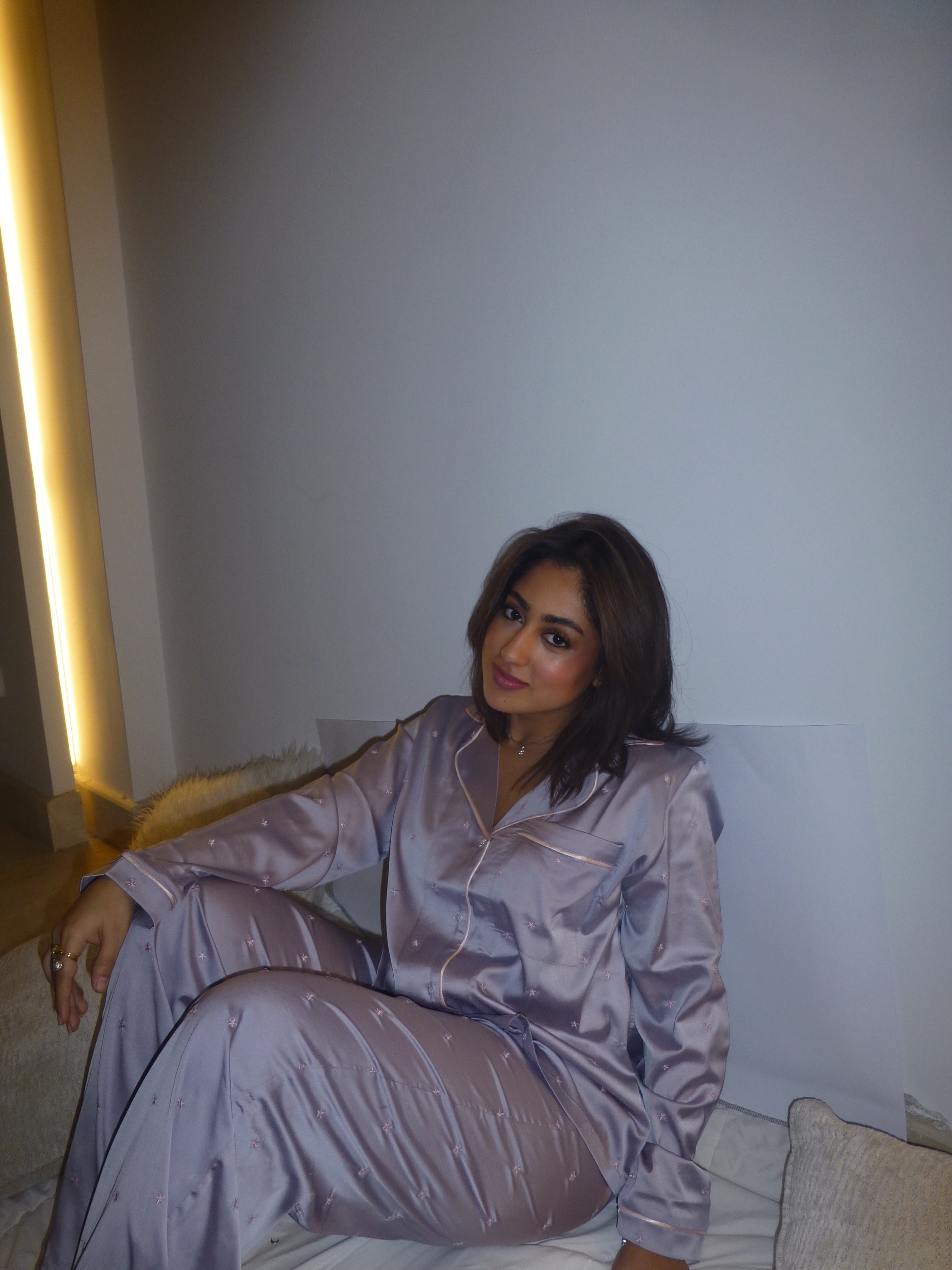 A butter-soft deep mauve pajama set with dazzling rhinestone details on the front and back. A blend of elegance and comfort, designed to make you feel as radiant as you look.